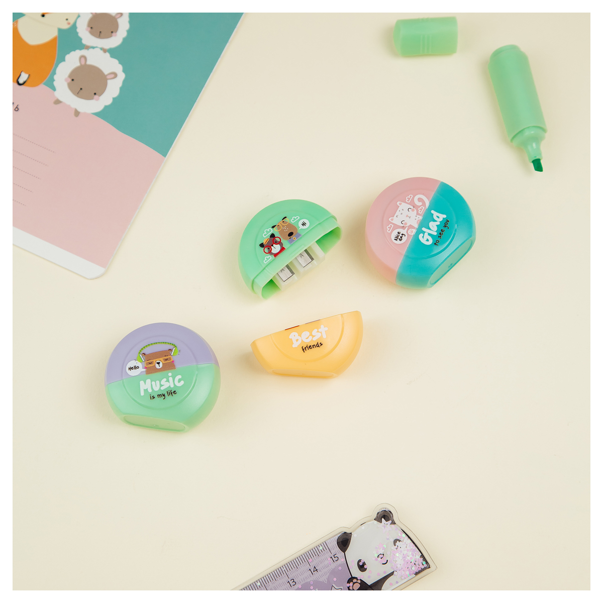 360448 Точилка пластиковая MESHU "Best friends", 2 отверстия, ассорти