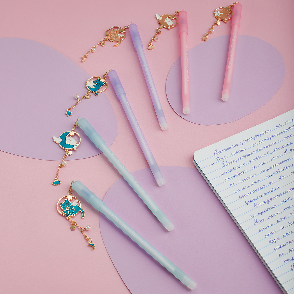 362472 Ручка гелевая стираемая MESHU "Grace cats" синяя, 0,5мм, корпус ассорти, с топпером