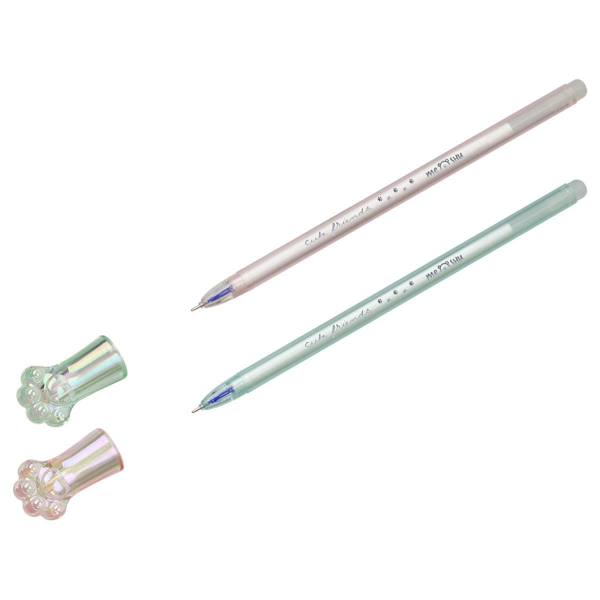 362467 Ручка гелевая стираемая автоматическая MESHU "Sweet paws" синяя, 0,5мм, корпус ассорти, с топпером