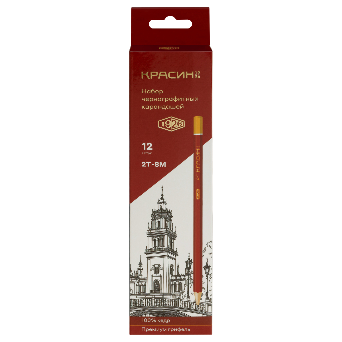 383587 Набор карандашей ч/г Красин "1926" 12шт., 2Т(Н)-8М(B), КЕДР, заточен., карт.пенал, европодвес