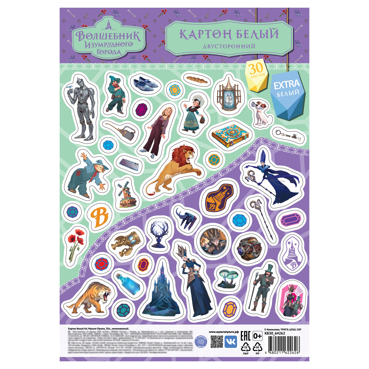 376096 Картон белый A4, Мульти-Пульти, 30л., немелованный, в пакете, "Волшебник изумрудного города"