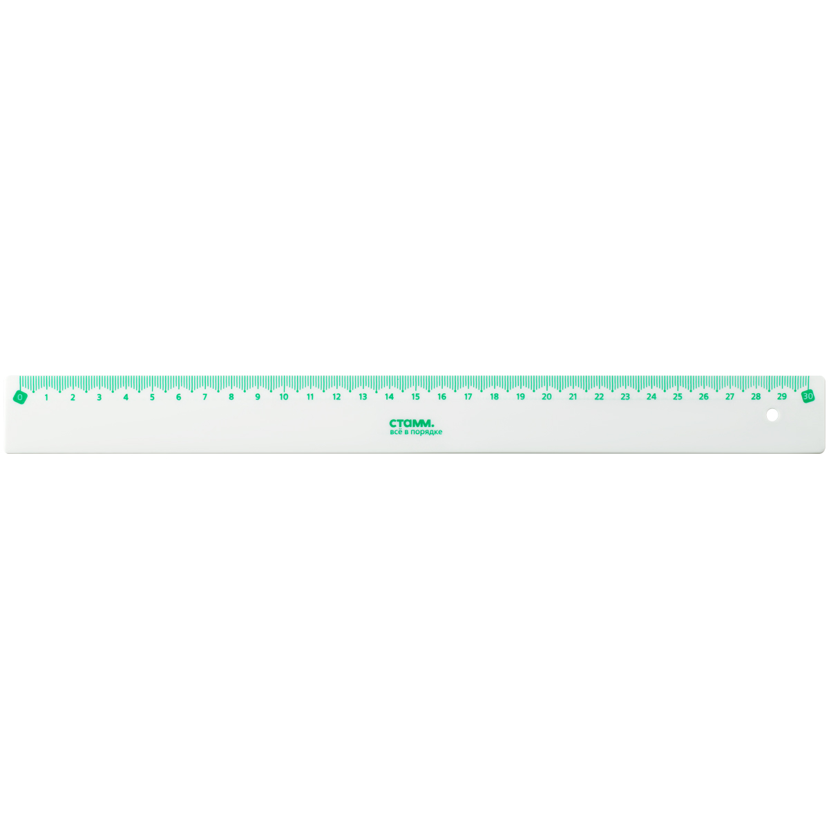 372181 Линейка 30см СТАММ, пластиковая, непрозрачная, белая, с цветной шкалой