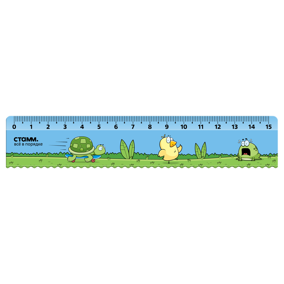 379938 Линейка 15см СТАММ "Черепашка", пластиковая, с волнистым краем, европодвес