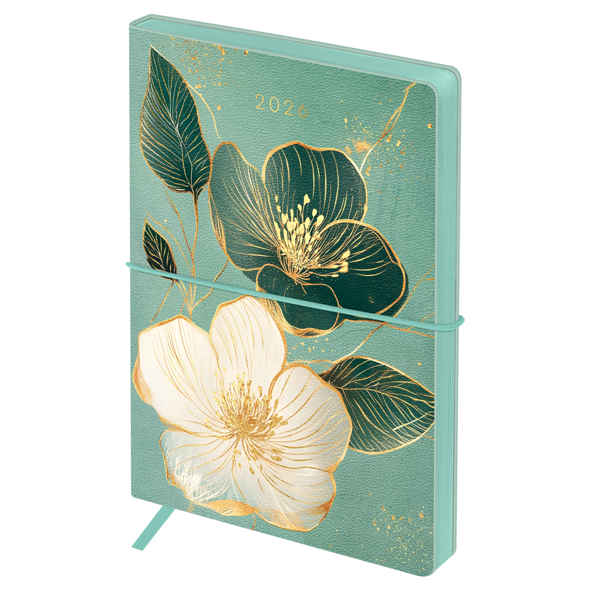 381151 Ежедневник датированный 2026г., А6+, 176л., мягкий переплет, кожзам, BG "Ornament", зеленый, отд. фольгой, цветно...