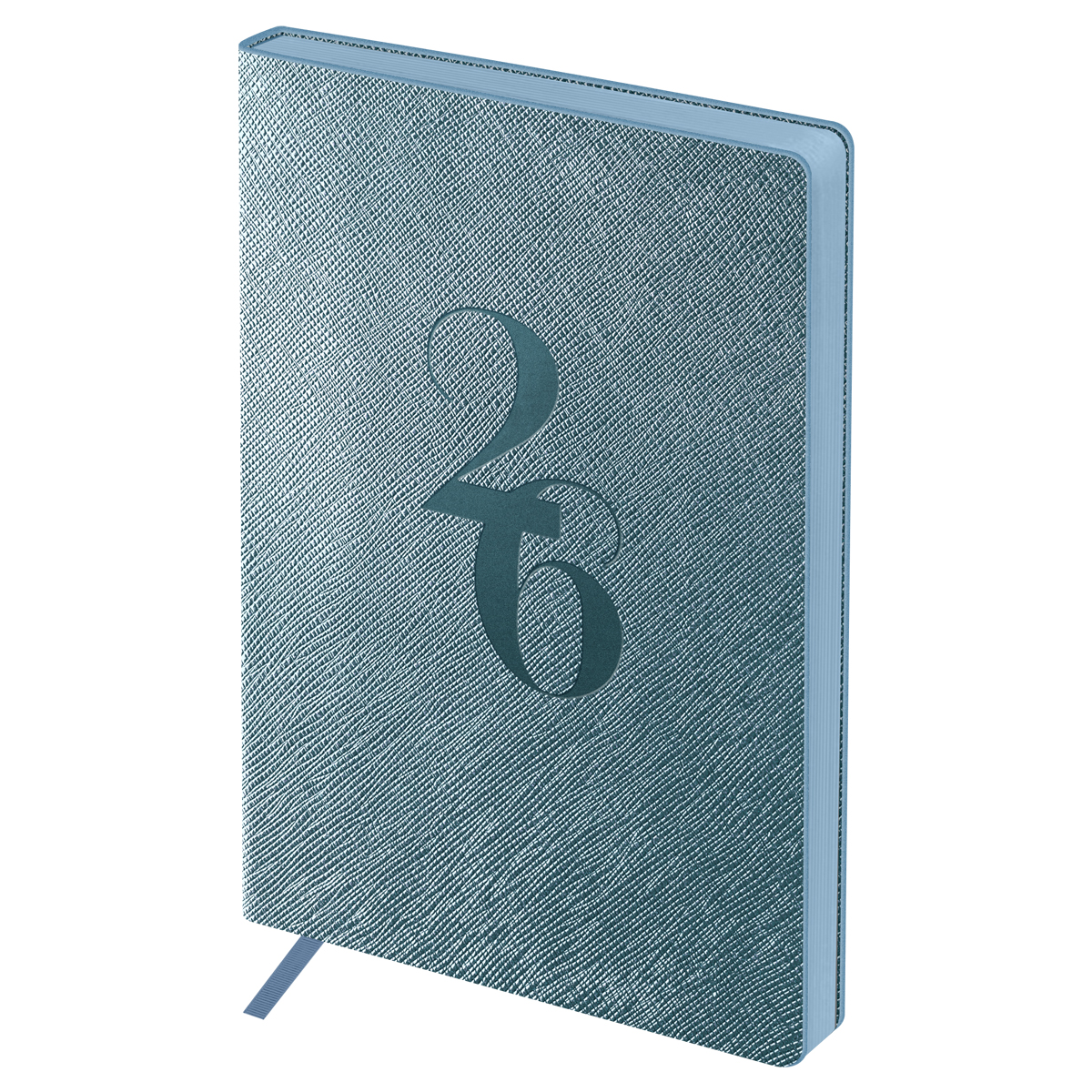 380555 Ежедневник датированный 2026г., А6+, 176л., мягкий переплет, кожзам, BG "Shine. Cobalt", серо-голубой, цветной ср...
