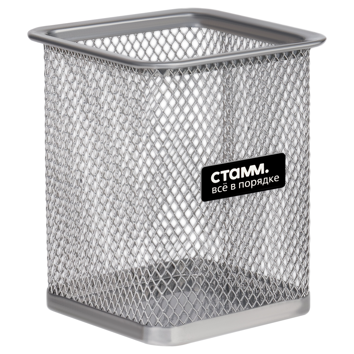 355962 Подставка-стакан СТАММ, металлическая, квадратная, серебристая