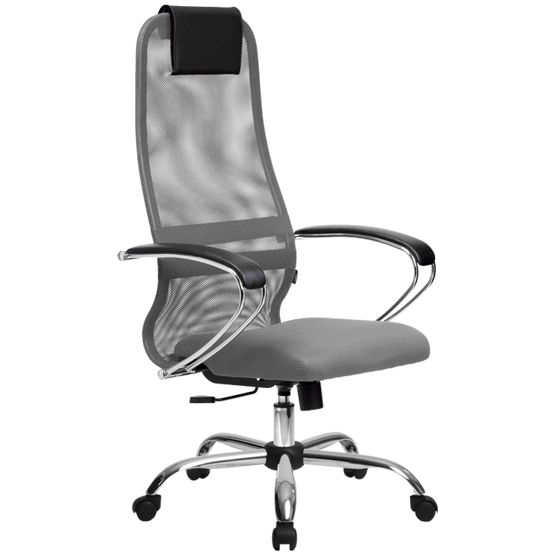 330324 Кресло руководителя Метта SU-BK-8 CH, ткань-сетка светло-серая №24, спинка-сетка, топ-ган (101/003, 131/003)