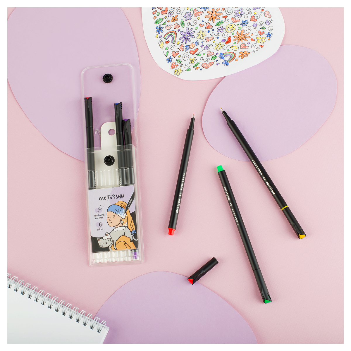358375 Набор капиллярных ручек MESHU 6цв., 0,4мм, европодвес