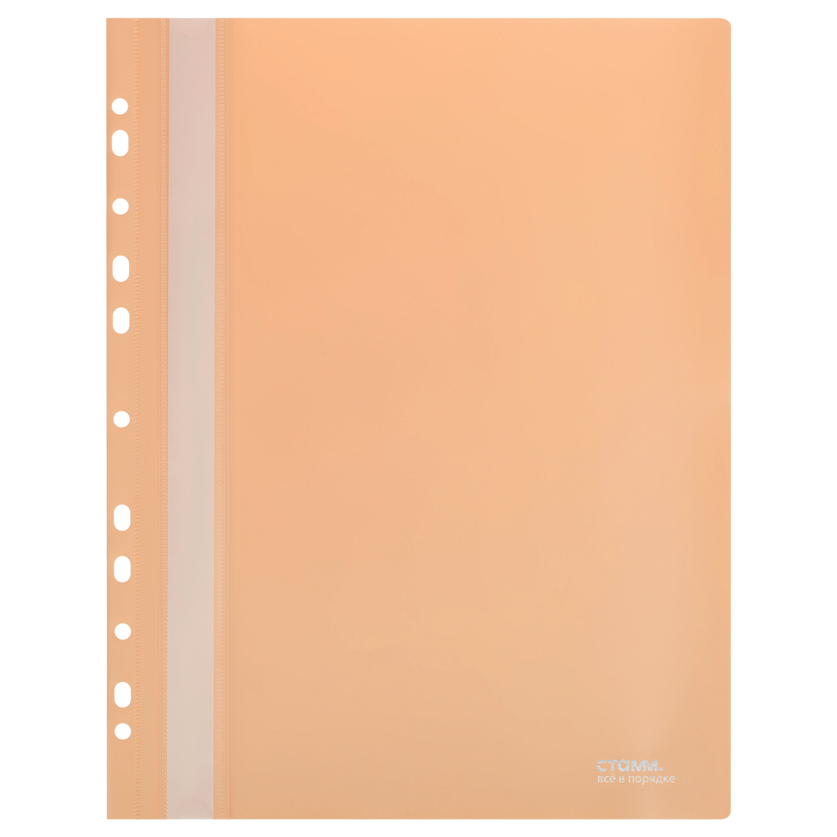 368402 Папка-скоросшиватель пластик. перф. СТАММ "Акцент" А4, 180мкм, персиковая с прозр. верхом