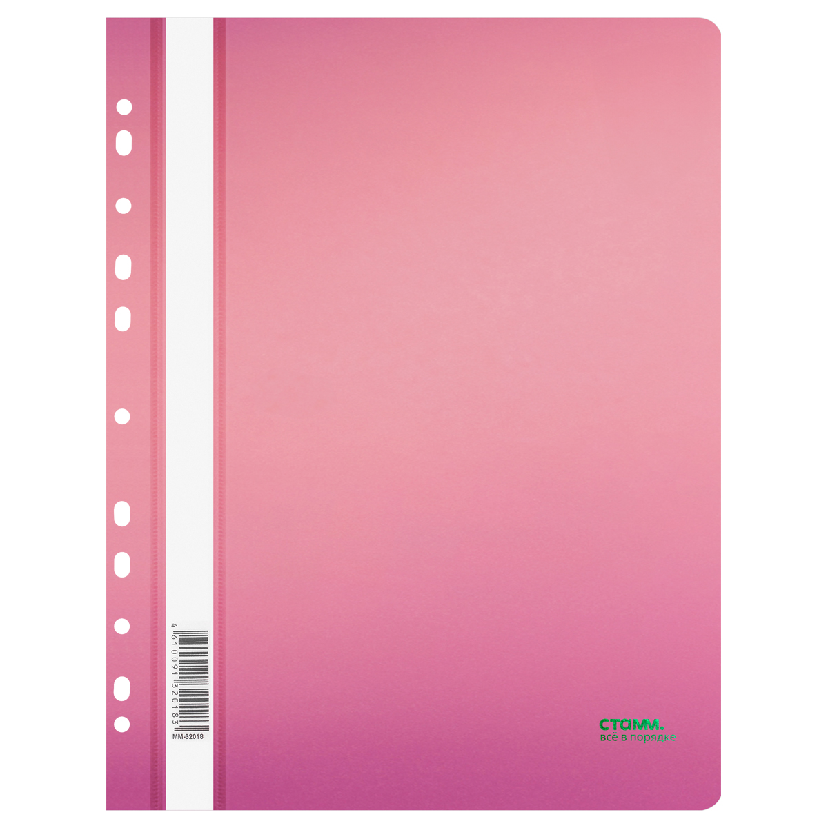 377059 Папка-скоросшиватель пластик. перф. СТАММ "Сияние" А4, 180мкм, розовый с прозр. верхом