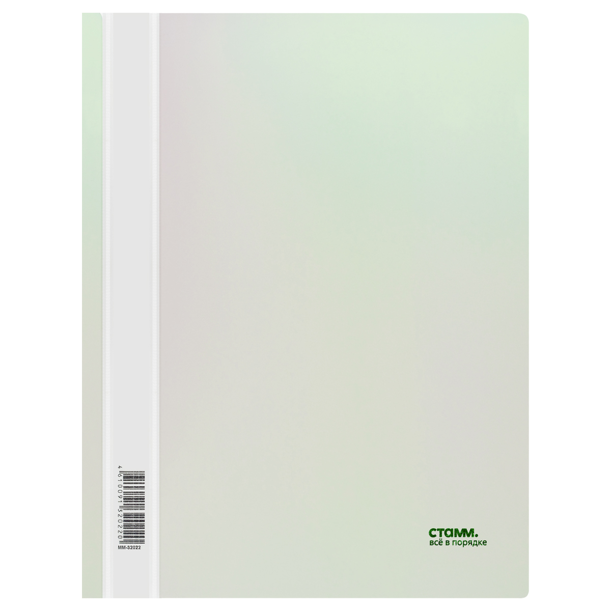 377060 Папка-скоросшиватель пластик. перф. СТАММ "Сияние" А4, 180мкм, белый с прозр. верхом