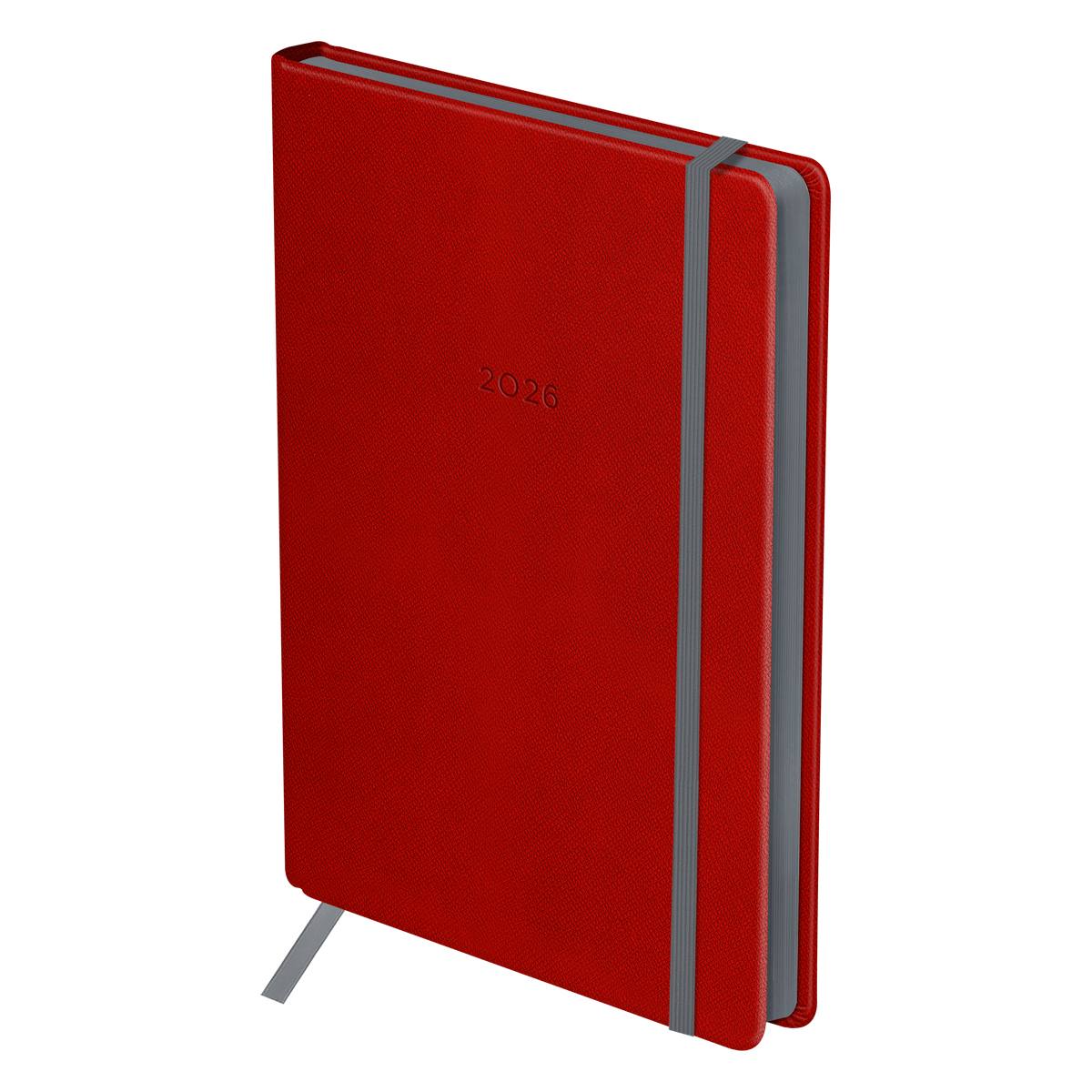 380098 Ежедневник датированный 2026г., А5, 176л., твердый переплет, кожзам, BG "Nebraska. Dark red", красный (БиДжи)
