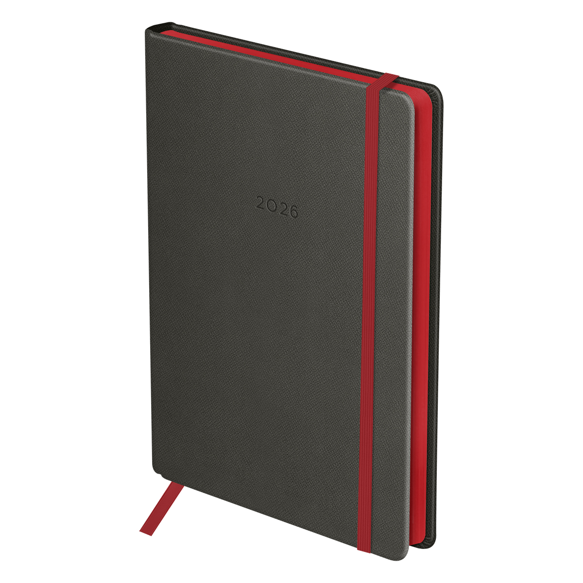 380564 Ежедневник датированный 2026г., А5, 176л., твердый переплет, кожзам, BG "Contrast. Graphite", графитовый, цветной...