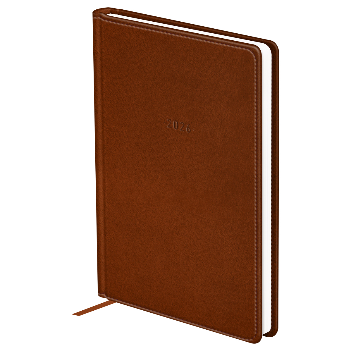 380099 Ежедневник датированный 2026г., А5, 176л., твердый переплет, кожзам, BG "Nebraska. Brown", коричневый (БиДжи)