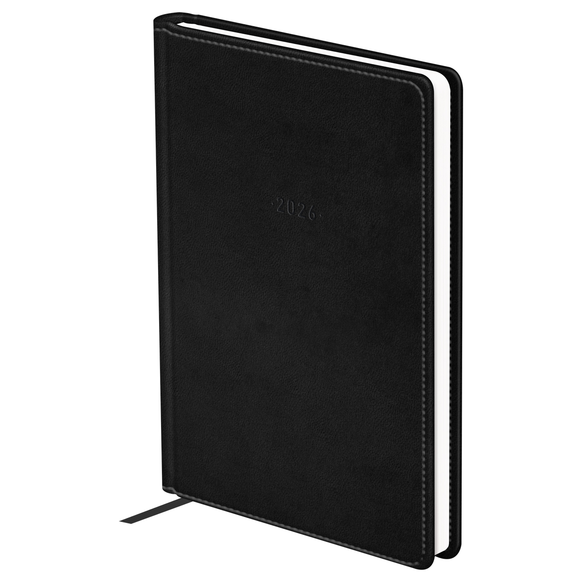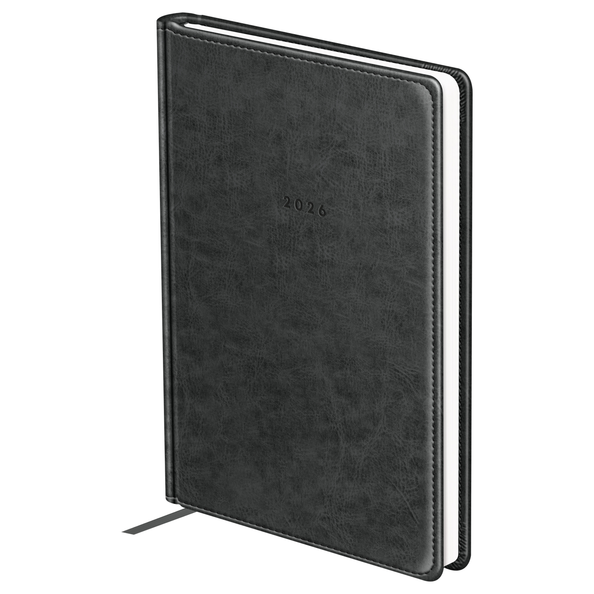 380097 Ежедневник датированный 2026г., А5, 176л., твердый переплет, кожзам, BG "Nebraska. Black", черный (БиДжи)