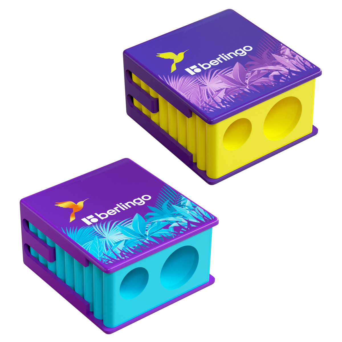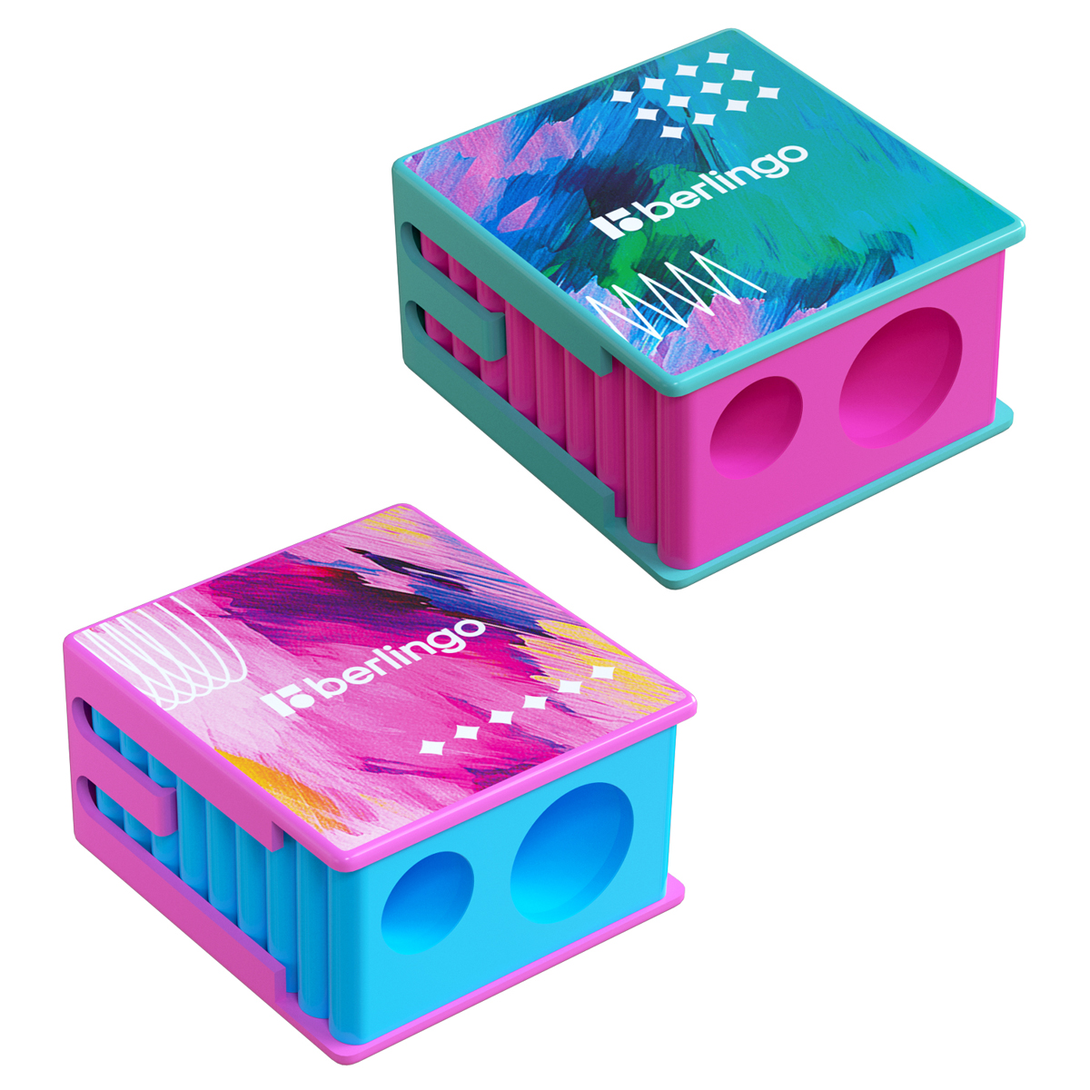 287223 Точилка пластиковая Berlingo "Radiance" 2 отверстия, контейнер, ассорти (BERLINGO_)