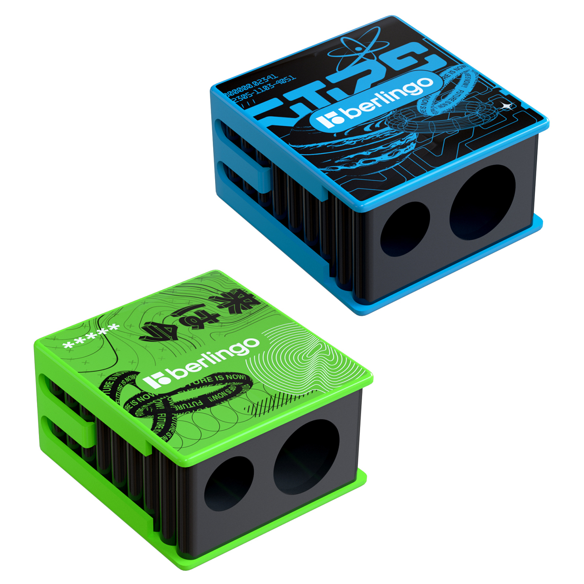 371358 Точилка пластиковая Berlingo "Future Tech", с контейнером, 2 отверстия, ассорти (BERLINGO_)