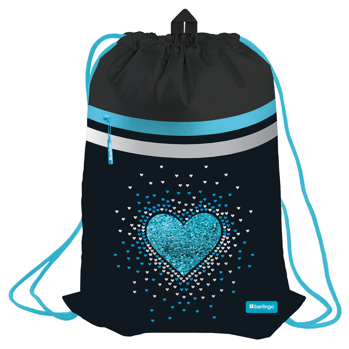 351234 Мешок для обуви 1 отделение Berlingo "Basic black", 360*460мм, светоотражающая лента, карман на молнии (BERLINGO_...