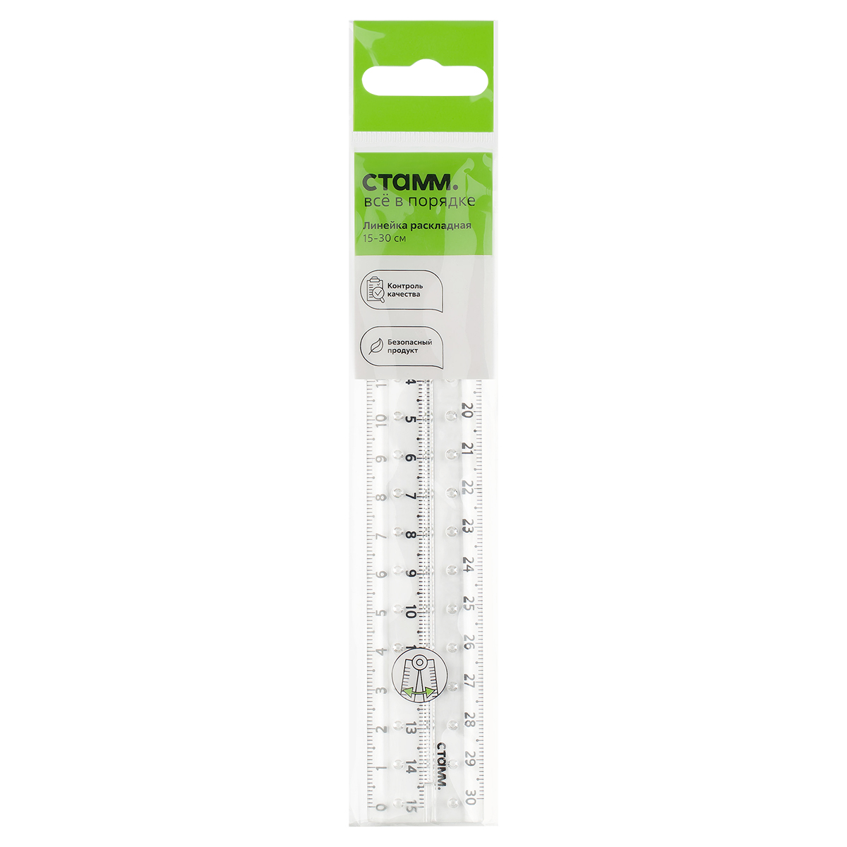 381005 Линейка раскладная 15-30см СТАММ, пластиковая, прозрачная, европодвес