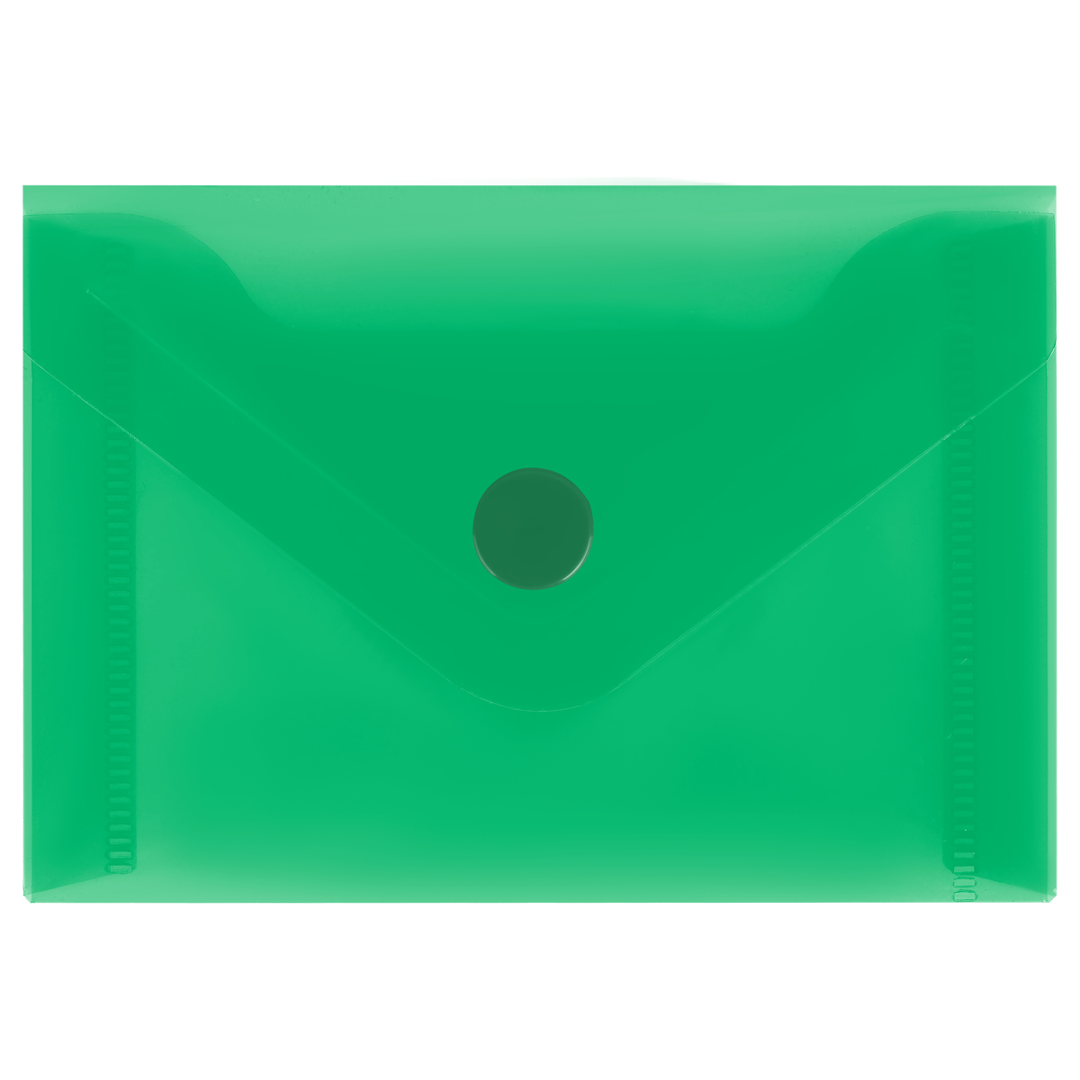 370524 Папка-конверт на кнопке СТАММ А6 (105*148мм), 150мкм, пластик, прозрачная, зеленая