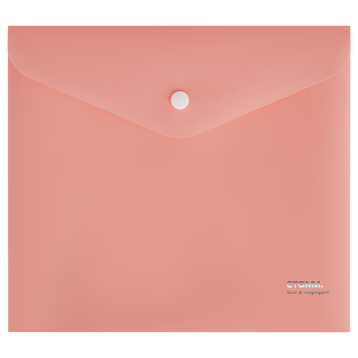 376225 Папка-конверт на кнопке СТАММ "Акцент" А5+, 180мкм, пластик, непрозрачная, коралловая