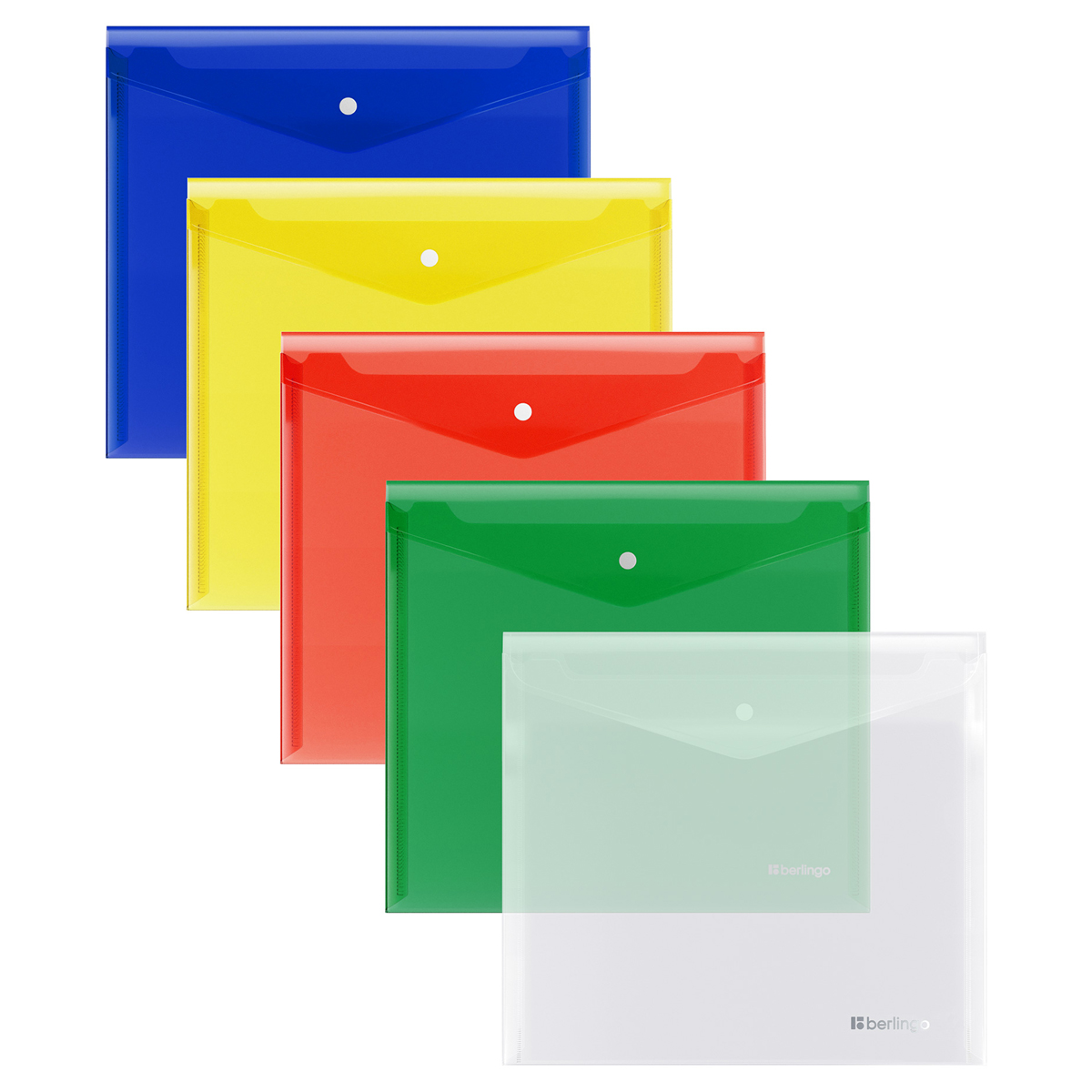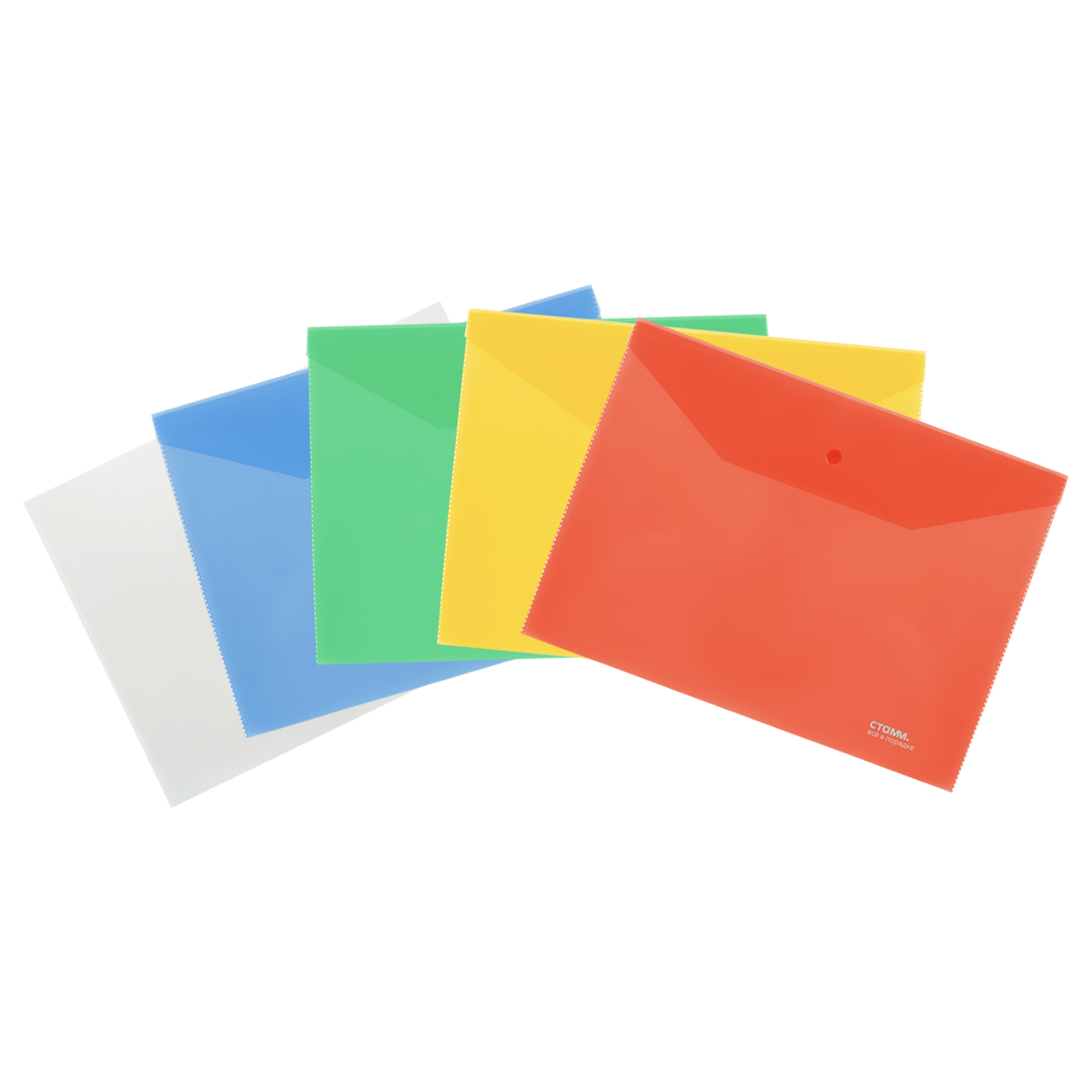 356734 Папка-конверт на кнопке СТАММ В5, 180мкм, пластик, прозрачная, ассорти