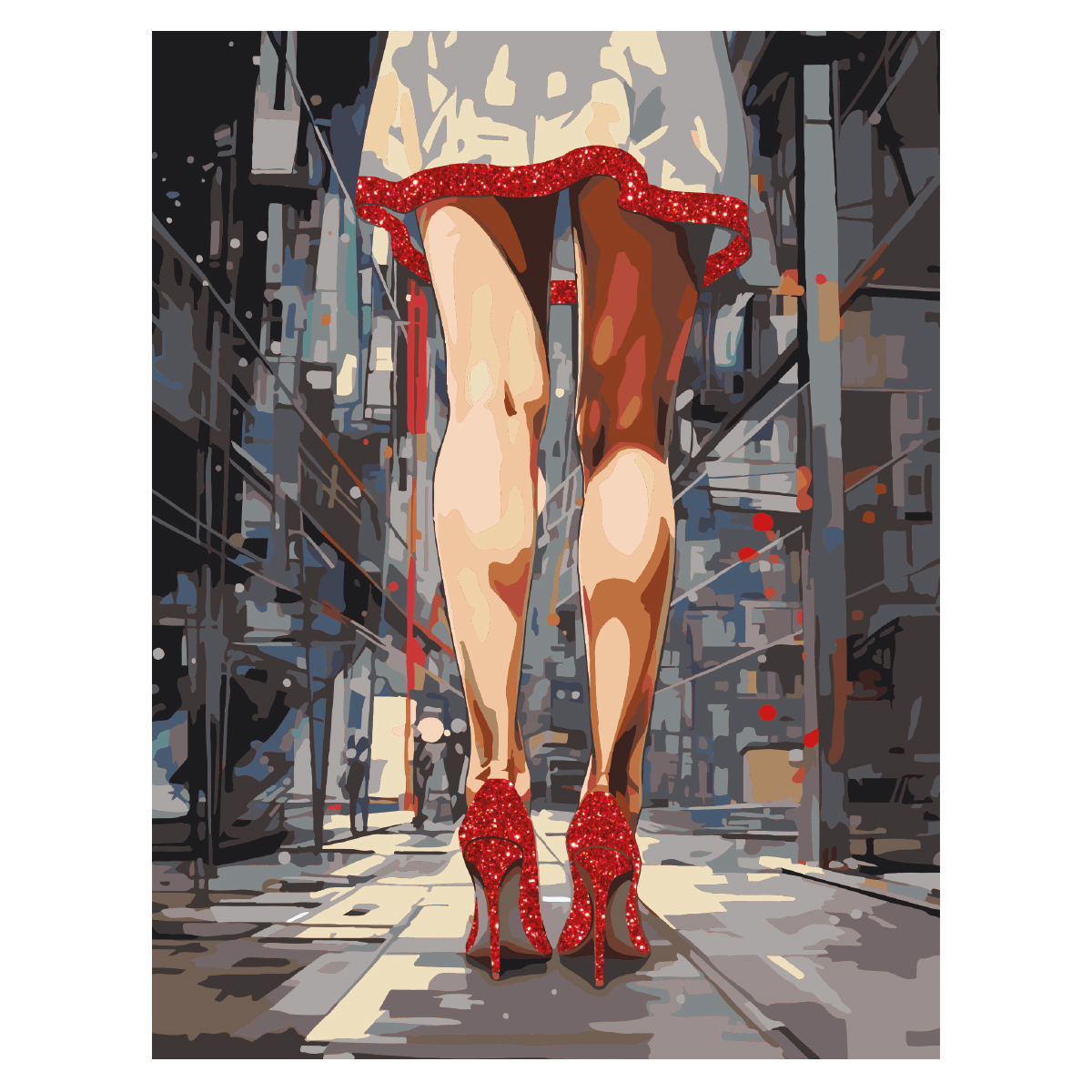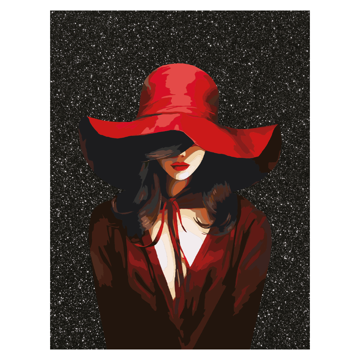 363875 Картина по номерам на холсте с глиттером ТРИ СОВЫ "Девушка в красном", 30*40, с акриловыми красками и кистями