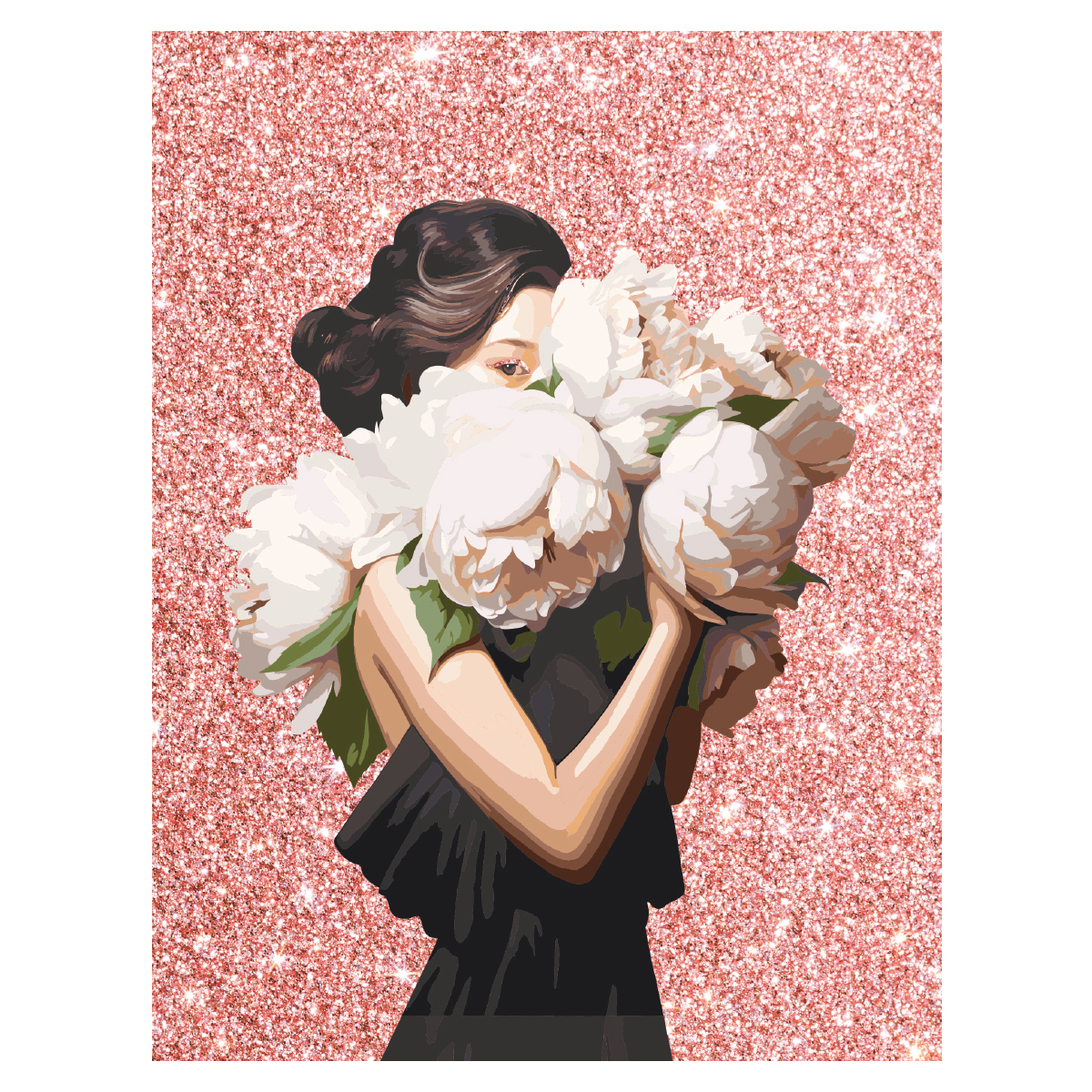 363877 Картина по номерам на холсте с глиттером ТРИ СОВЫ "Девушка с бокалом", 30*40, с акриловыми красками и кистями
