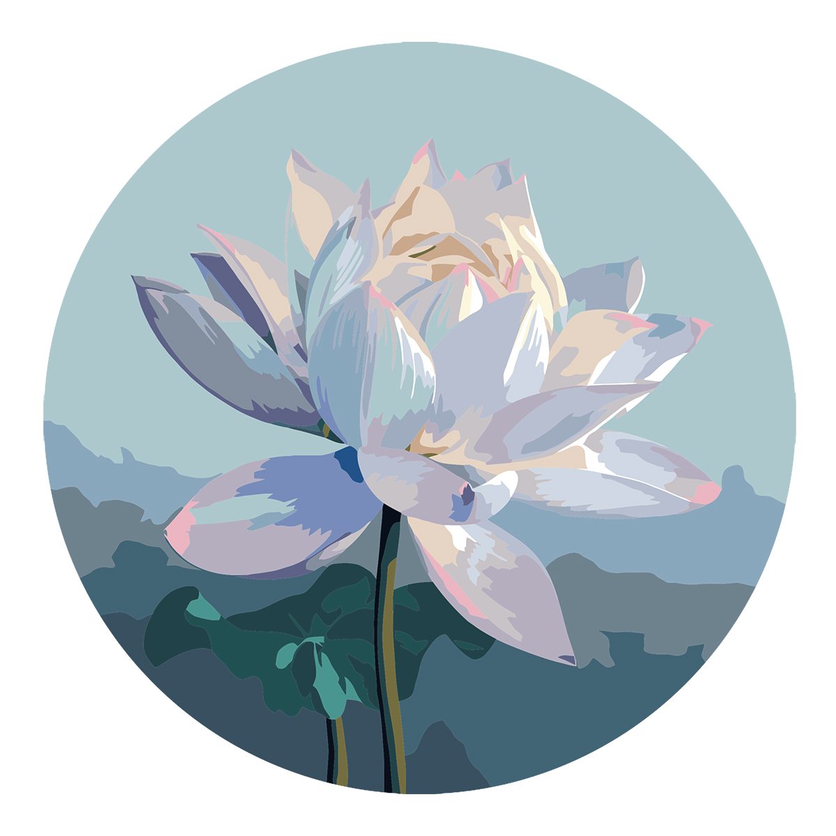 374435 Картина по номерам на фигурном холсте ТРИ СОВЫ "Цветок лотоса", форма круг, с акриловыми красками и кистями