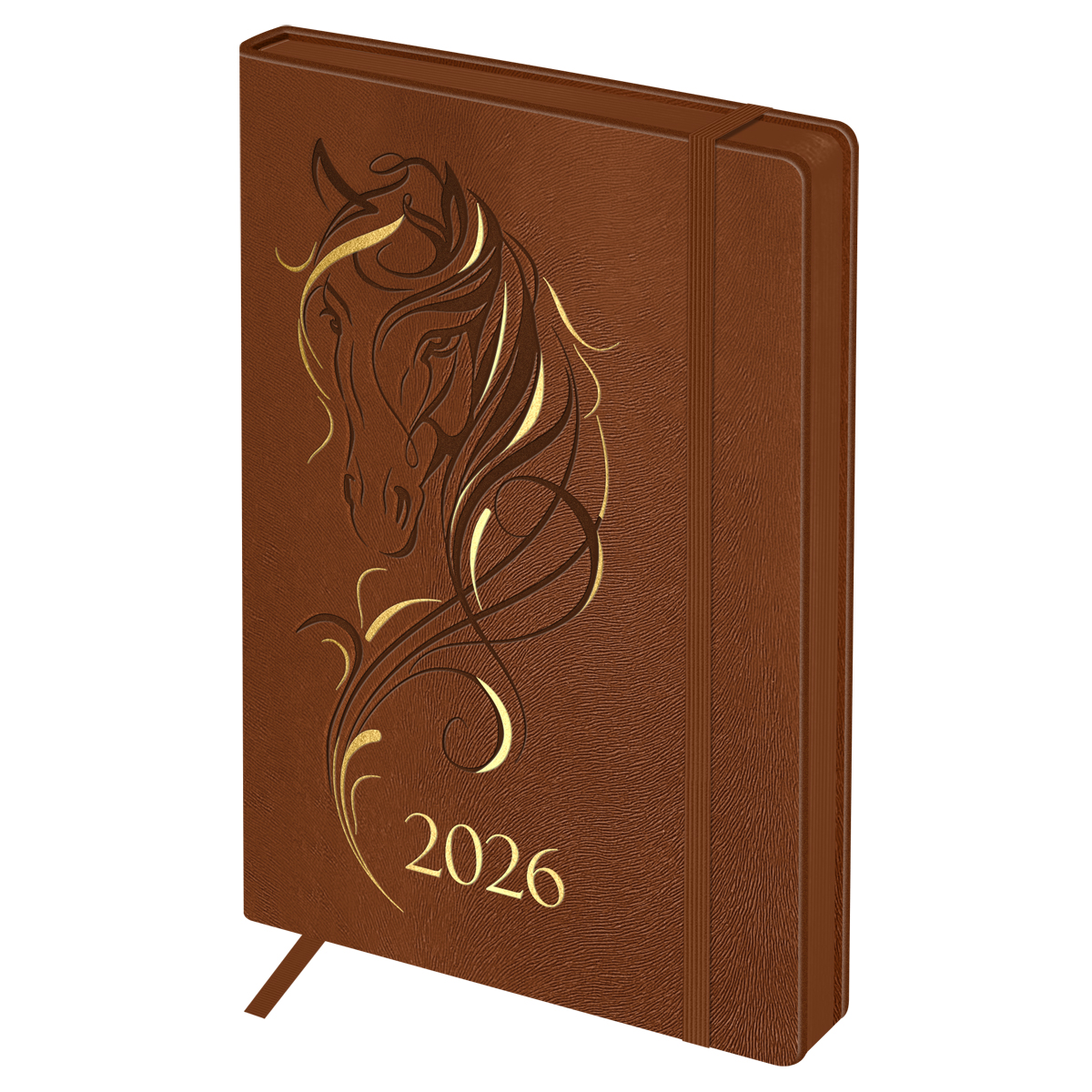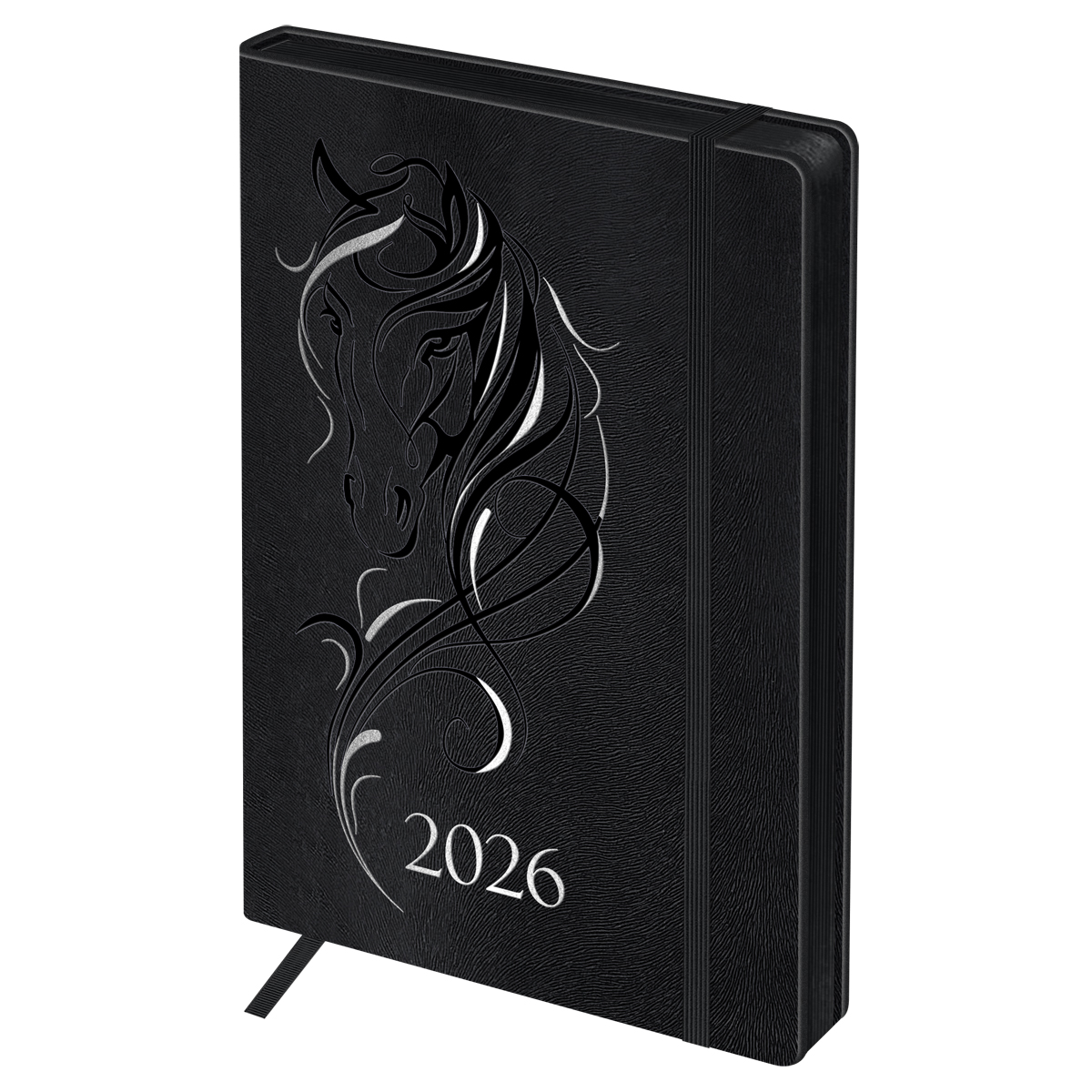 380153 Ежедневник датированный 2026г., А5, 176л., твердый переплет, кожзам, BG "Horse. Shade", цветной срез, с резинкой,...