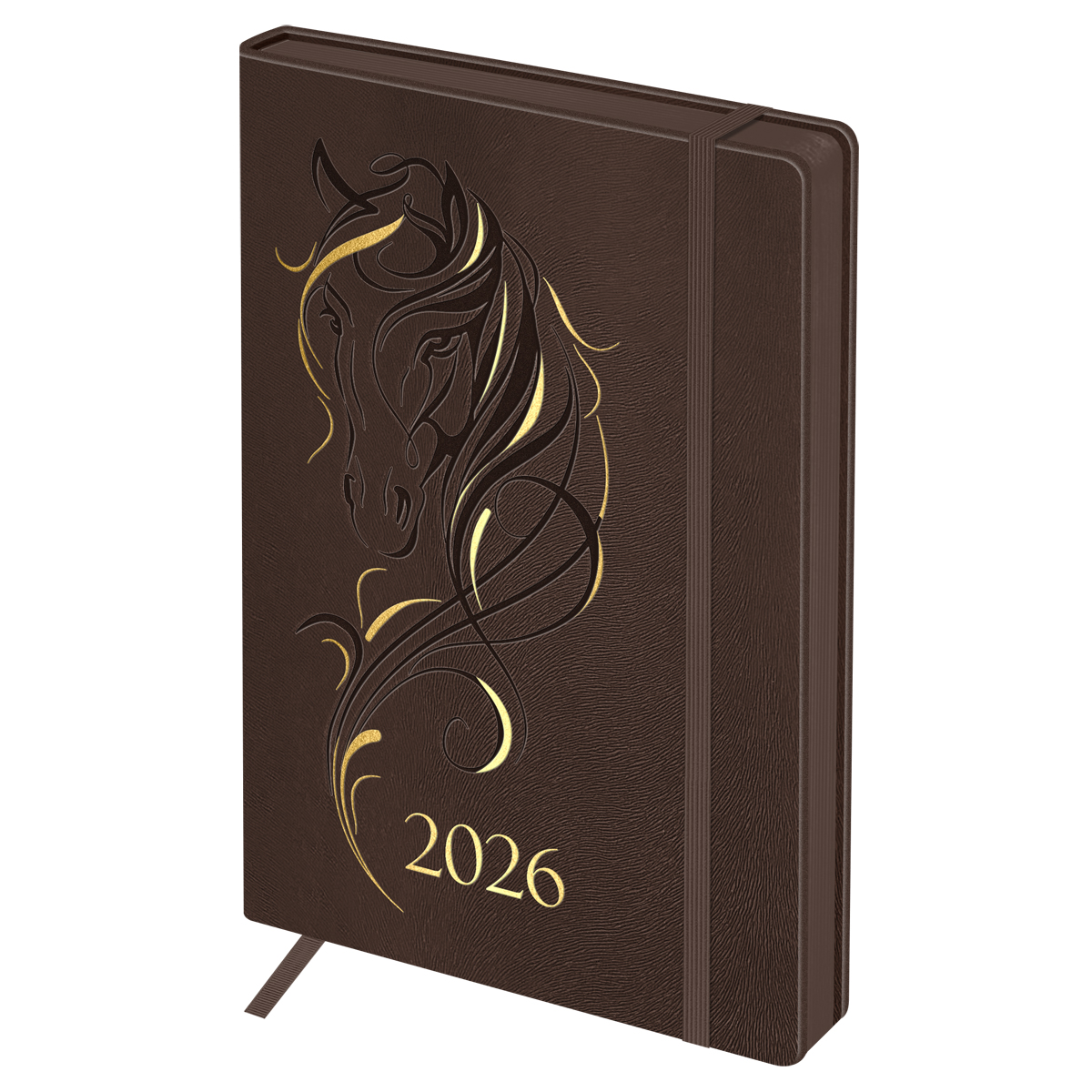 380150 Ежедневник датированный 2026г., А5, 176л., твердый переплет, кожзам, BG "Horse. Bourbon", цветной срез, с резинко...