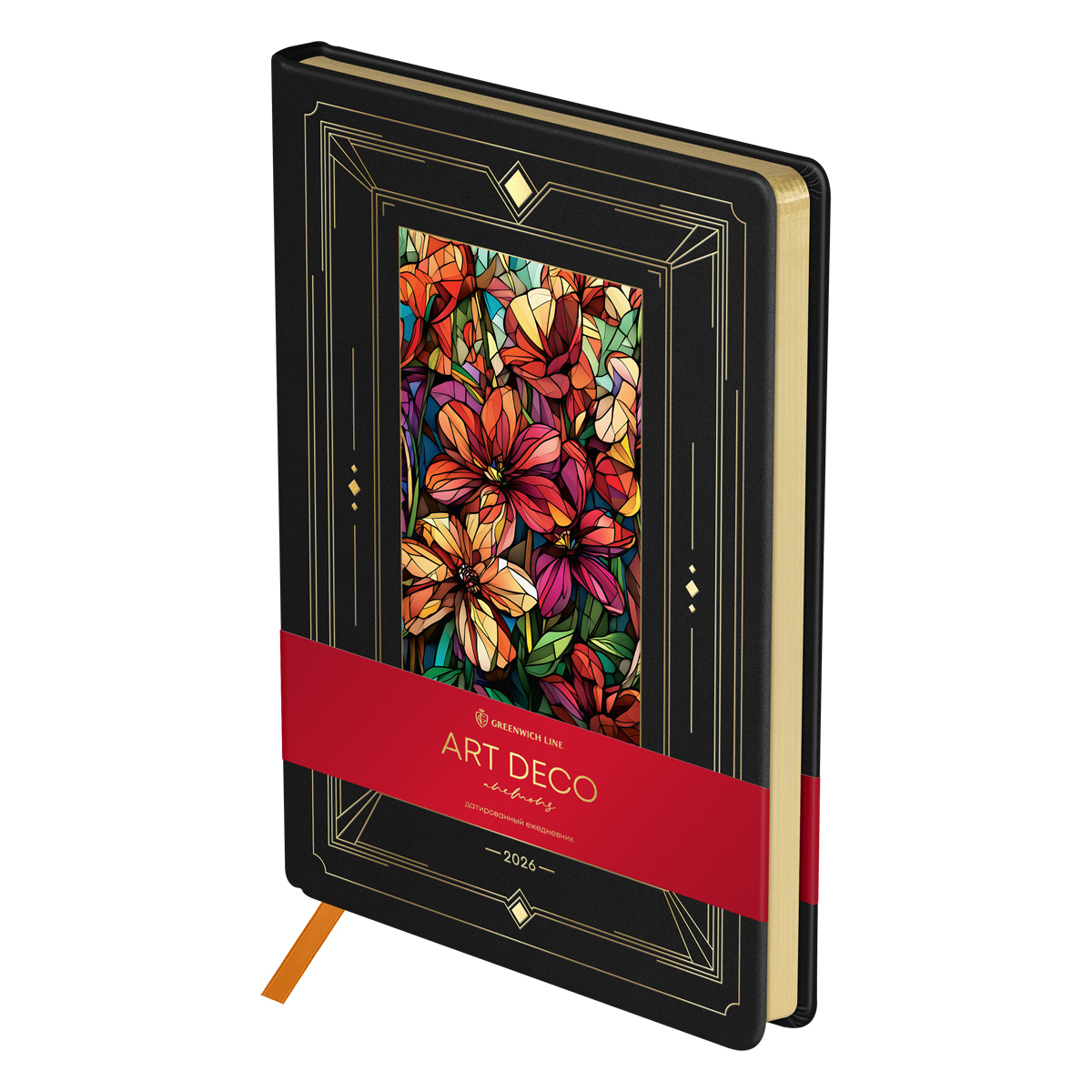 381159 Ежедневник датированный 2026г., А5, 176л., твердый переплет, кожзам, Greenwich Line "Art Deco. Anemons", золотой ...