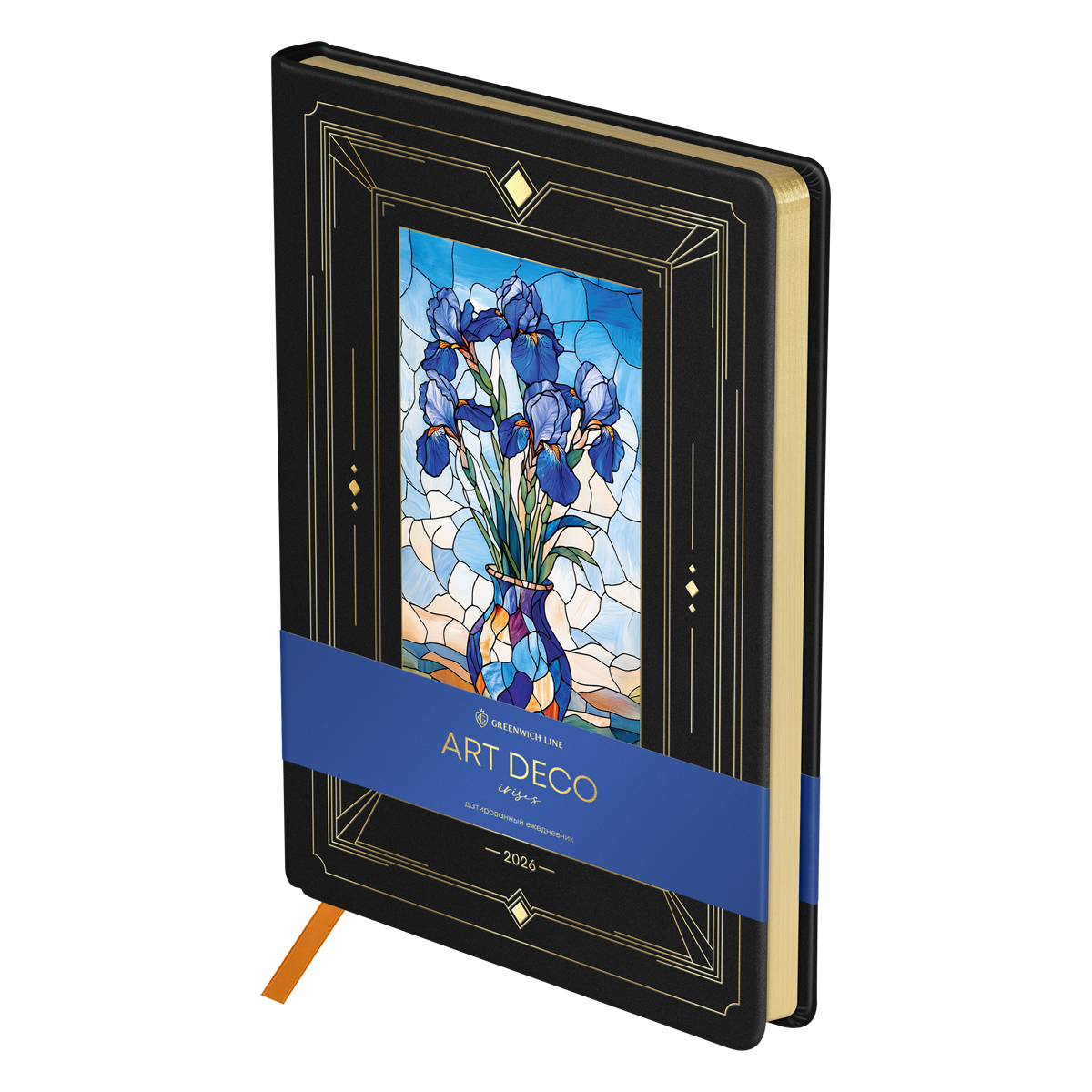 381161 Ежедневник датированный 2026г., А5, 176л., твердый переплет, кожзам, Greenwich Line "Art Deco. Irises", золотой с...