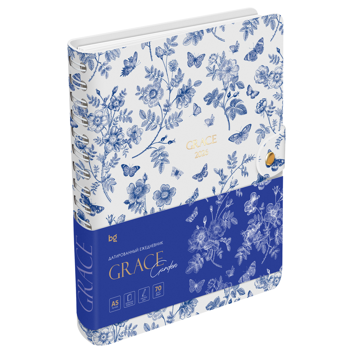 382549 Ежедневник датированный 2026г., А5, 176л., мягкий переплет, экокожа, BG "Grace. Garden", на гребне (БиДжи)