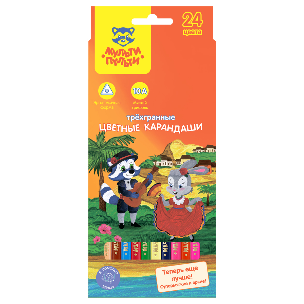 360999 Карандаши цветные Мульти-Пульти "Енот в Испании", 24цв., трехгран., заточен., картон, европодвес