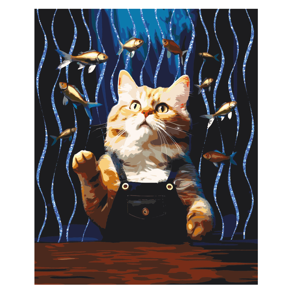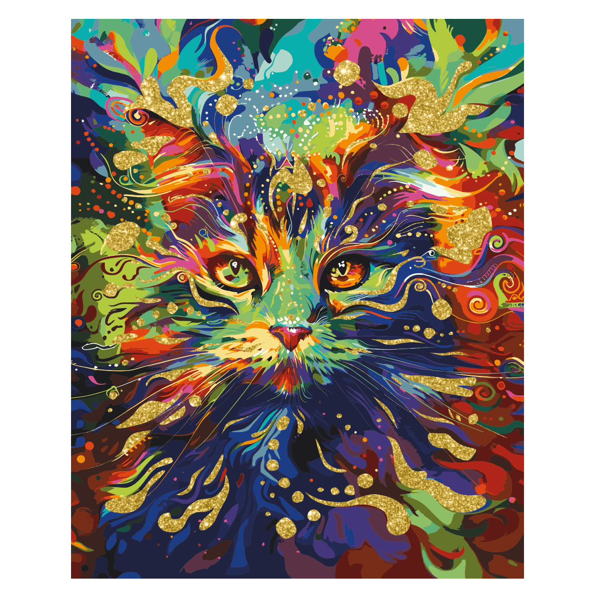 363883 Картина по номерам на холсте с глиттером ТРИ СОВЫ "Кот-холи", 40*50, с акриловыми красками и кистями