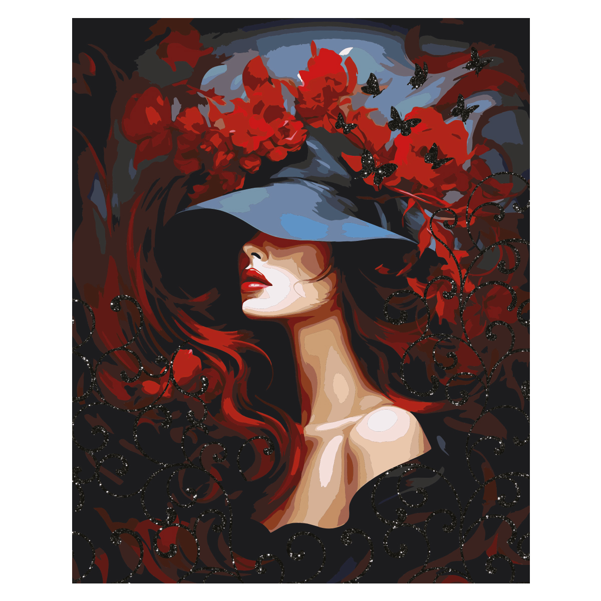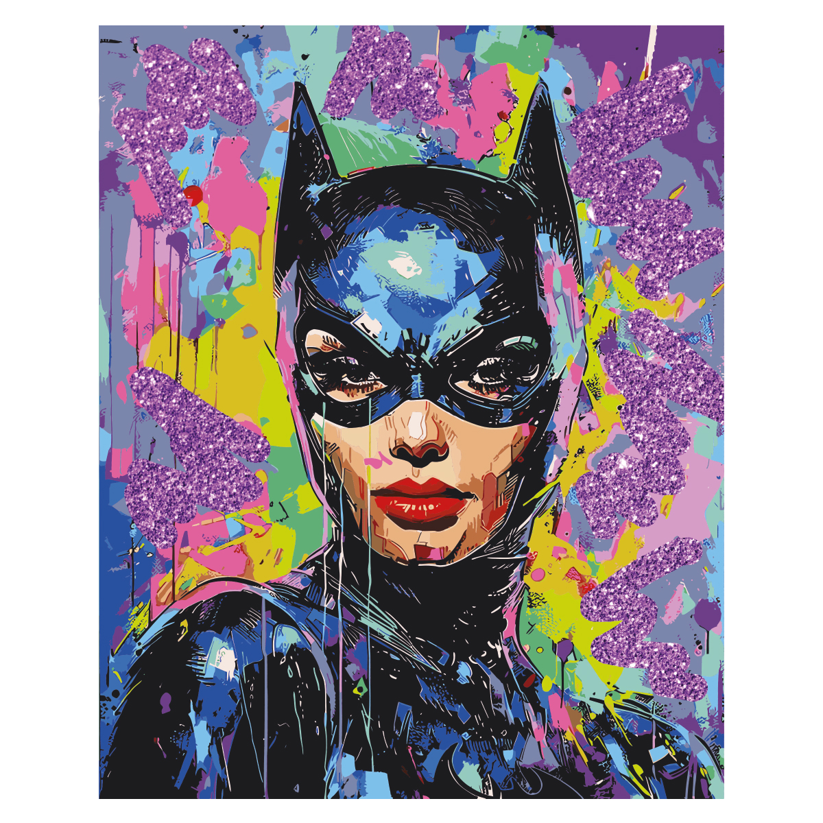 363887 Картина по номерам на холсте с глиттером ТРИ СОВЫ "Женщина-кошка", 40*50, с акриловыми красками и кистями