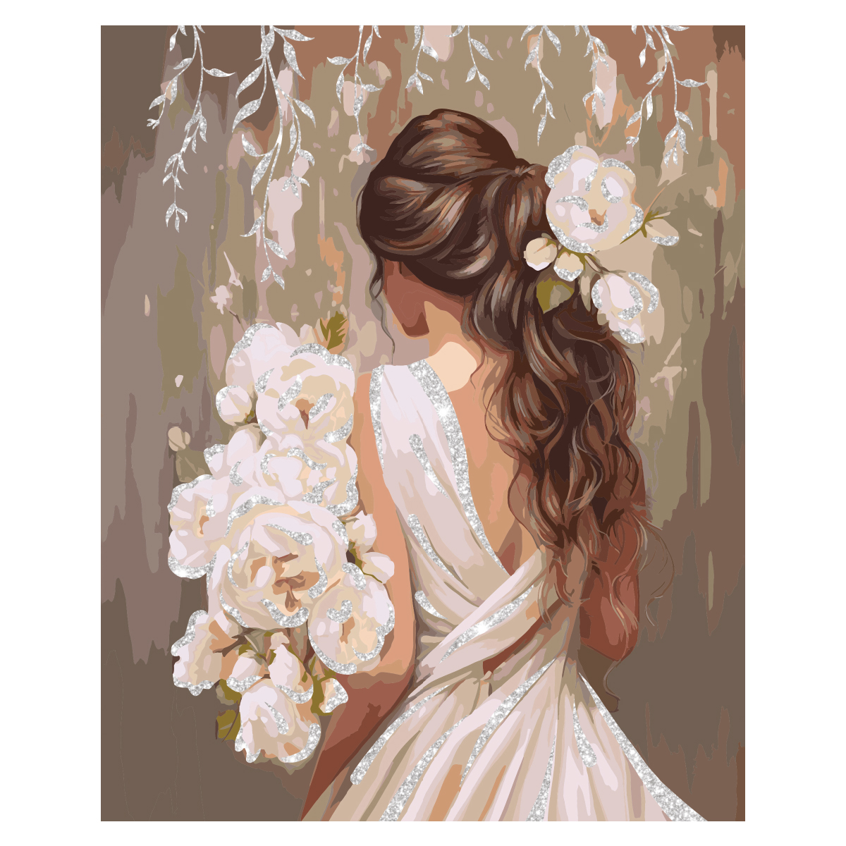 363886 Картина по номерам на холсте с глиттером ТРИ СОВЫ "Невеста", 40*50, с акриловыми красками и кистями