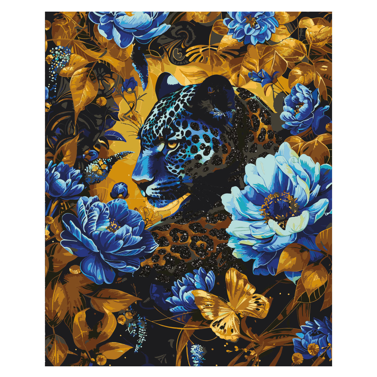 363890 Картина по номерам на холсте с глиттером ТРИ СОВЫ "Пантера", 40*50, с акриловыми красками и кистями