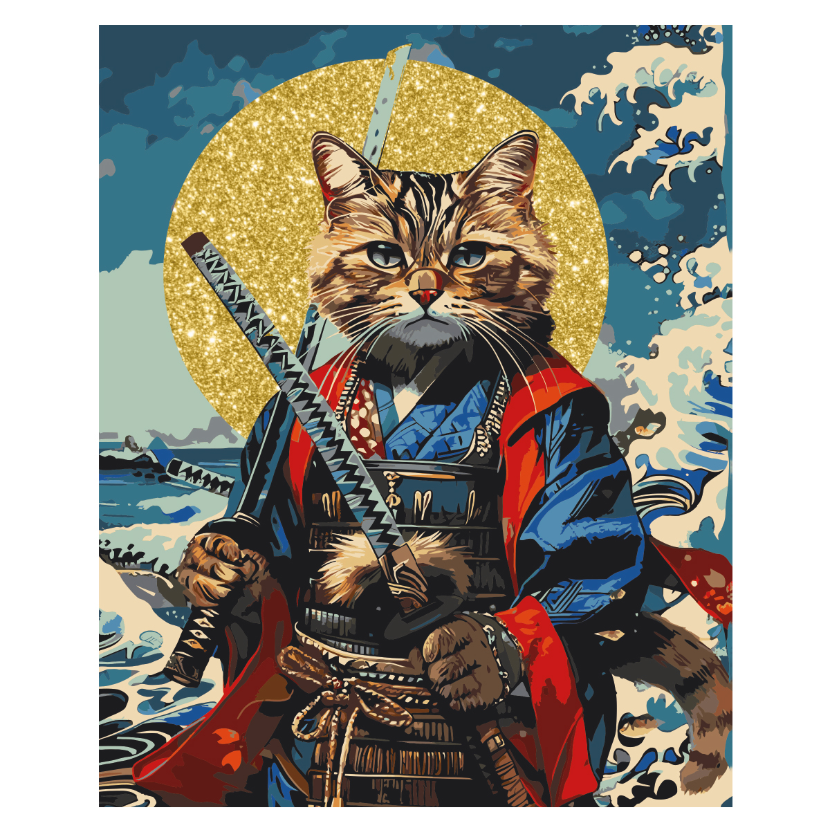 363891 Картина по номерам на холсте с глиттером ТРИ СОВЫ "Кот-самурай", 40*50, с акриловыми красками и кистями