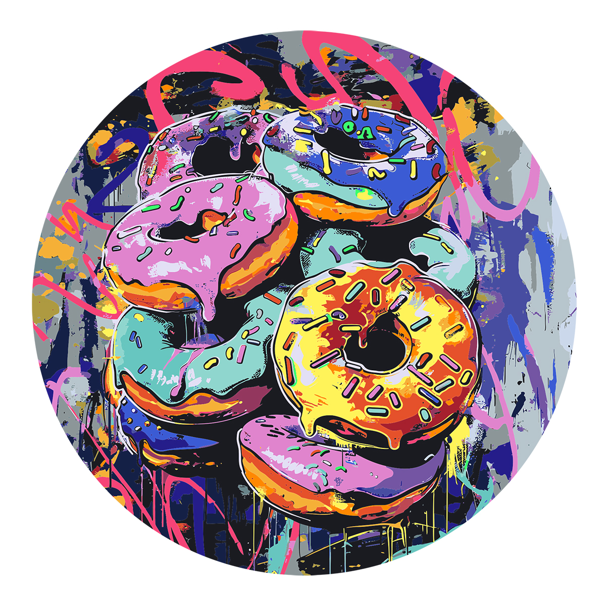 374432 Картина по номерам на фигурном холсте ТРИ СОВЫ "Донаты Арт", форма круг, с акриловыми красками и кистями