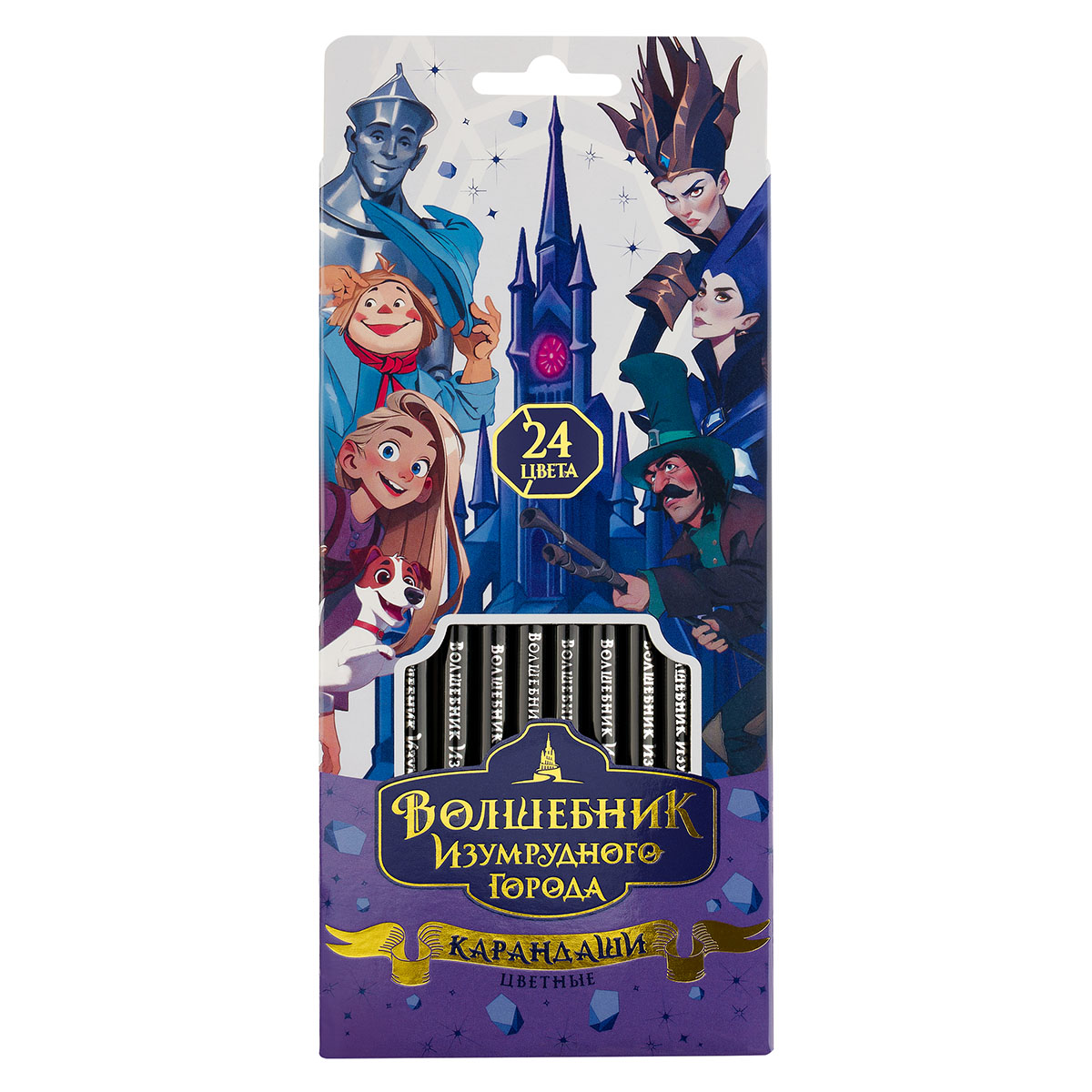376063 Карандаши цветные Мульти-Пульти "Волшебник Изумрудного Города", 24цв., кругл., заточ., картон, европодвес