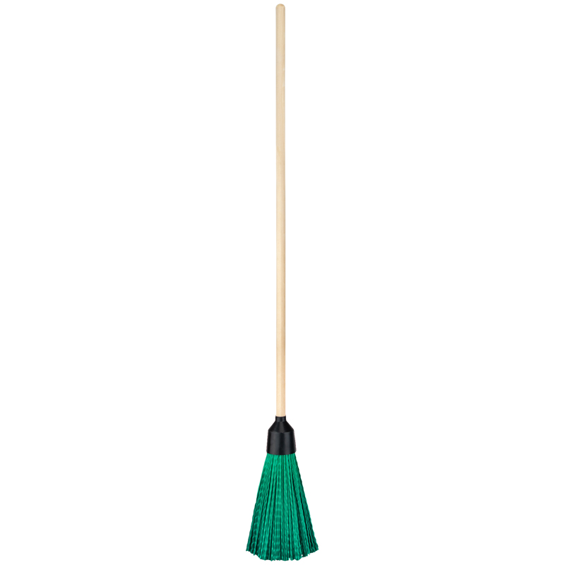 360667 Метла Vega, синтетическая, для улицы, круглая, 4 кольца, щетина 30см, с дерев. черенком 120см