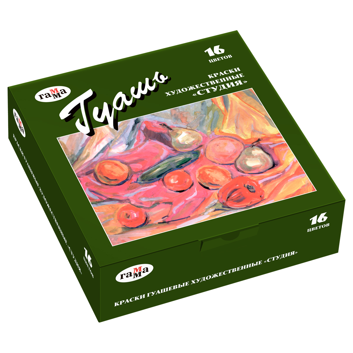 386007 Гуашь художественная Гамма "Студия", 16 цветов, 40мл, картон. упаковка (Гамма_художка/хобби)
