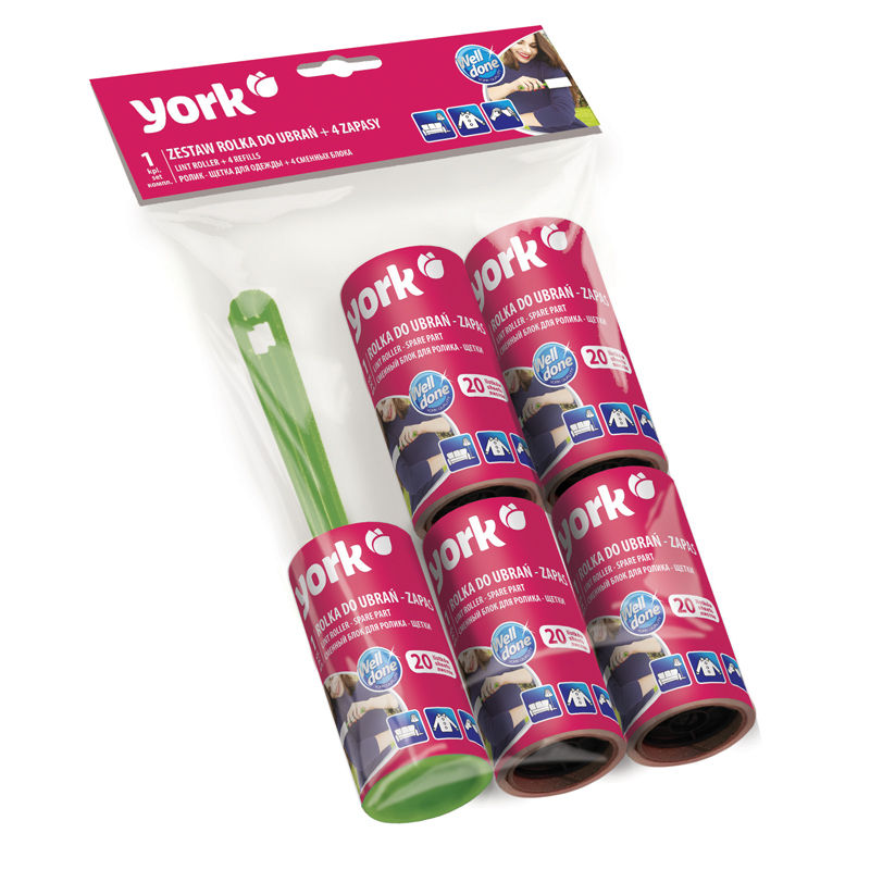 281291 Ролик для чистки одежды York, универсальный для удаления пыли и ворса + 4 сменных блока по 20 листов