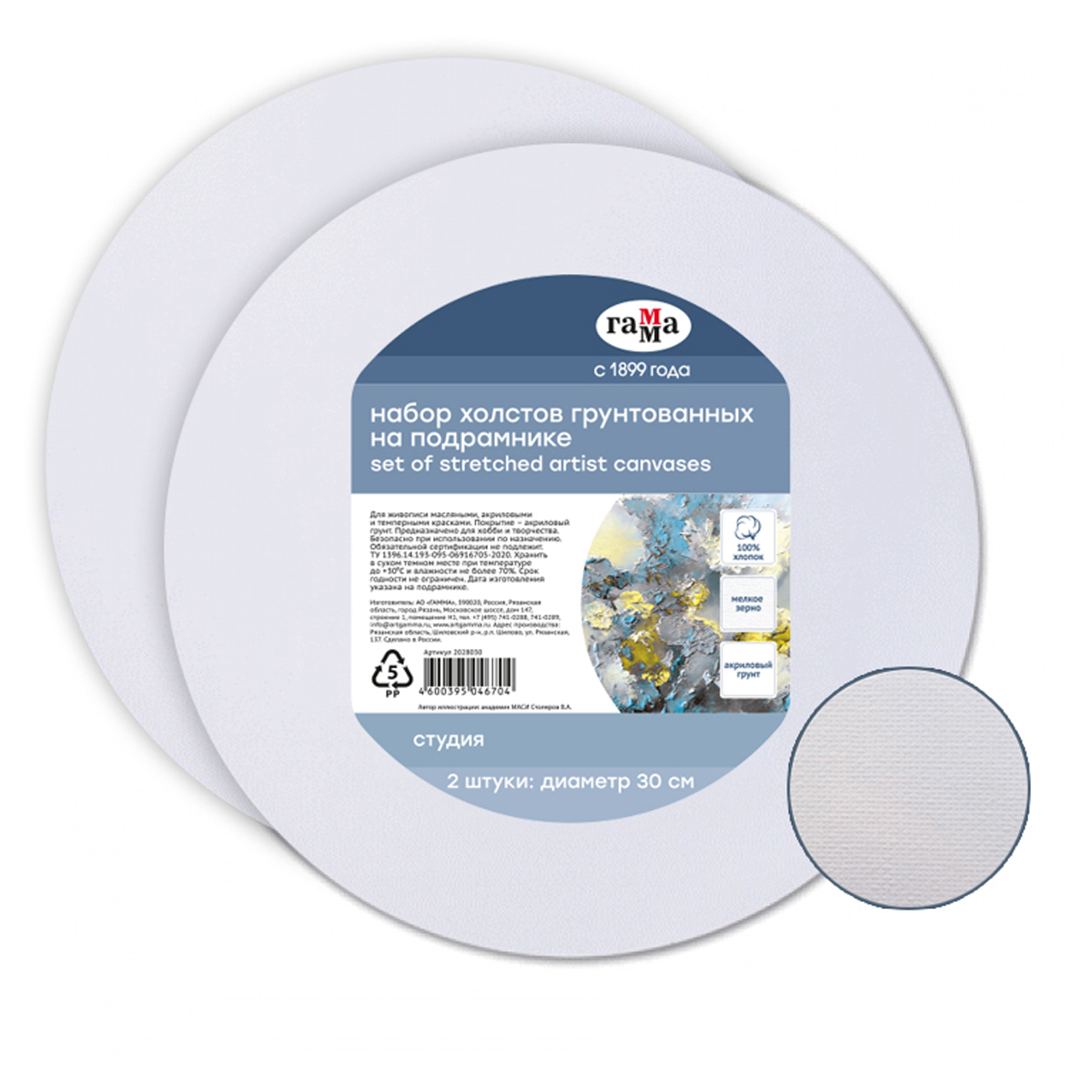 358229 Набор холстов на подрамнике Гамма "Студия", круглый, 2шт., диаметр 30см, 100% хлопок, 280г/м2, мелкое зерно (Гамм...