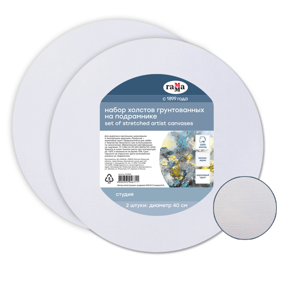 358230 Набор холстов на подрамнике Гамма "Студия", круглый, 2шт., диаметр 40см, 100% хлопок, 280г/м2, мелкое зерно (Гамм...