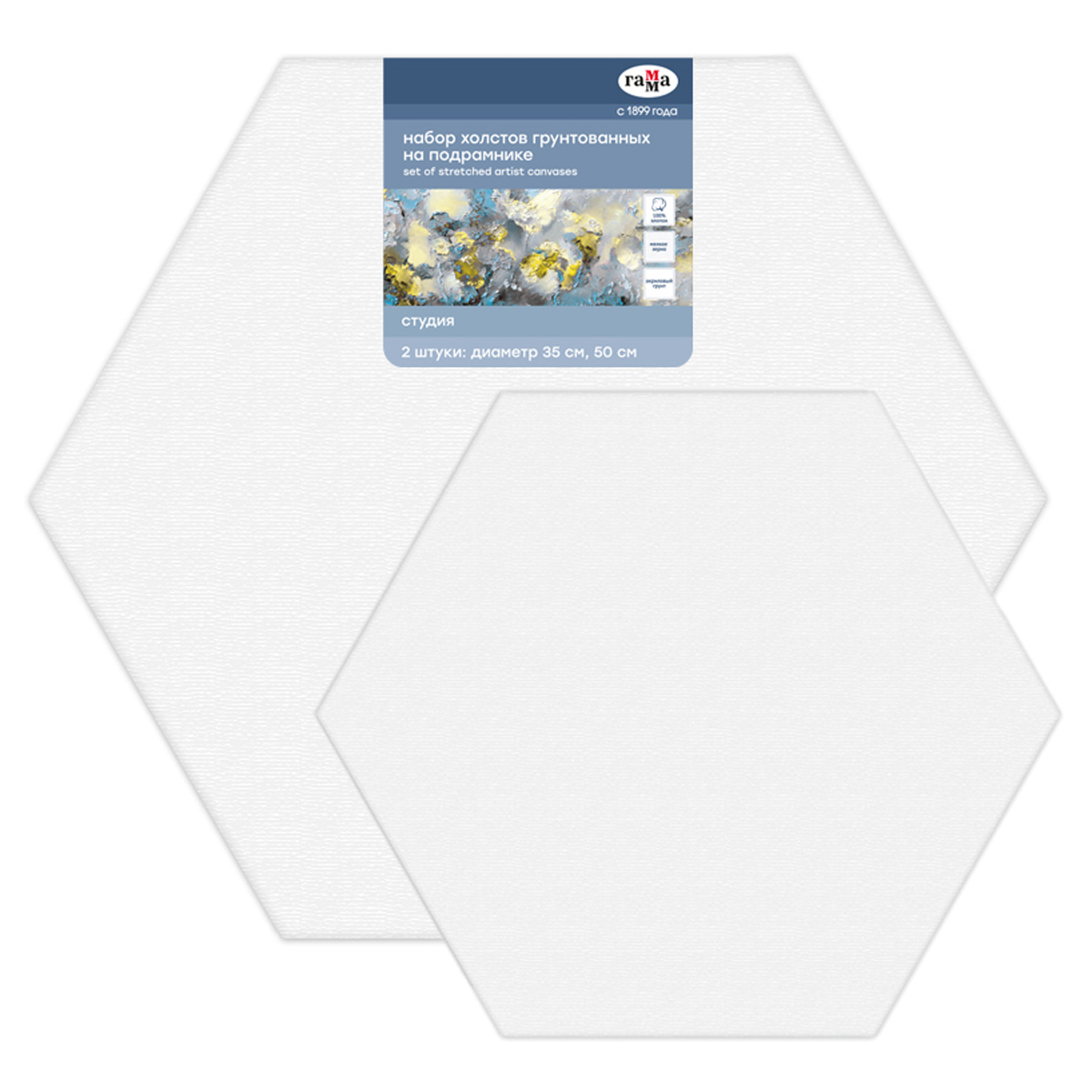 361305 Набор холстов на подрамнике Гамма "Студия", шестигранный, 2шт., диаметр 35см, 50см, хлопок, 280г/м2, мелкое зерно...