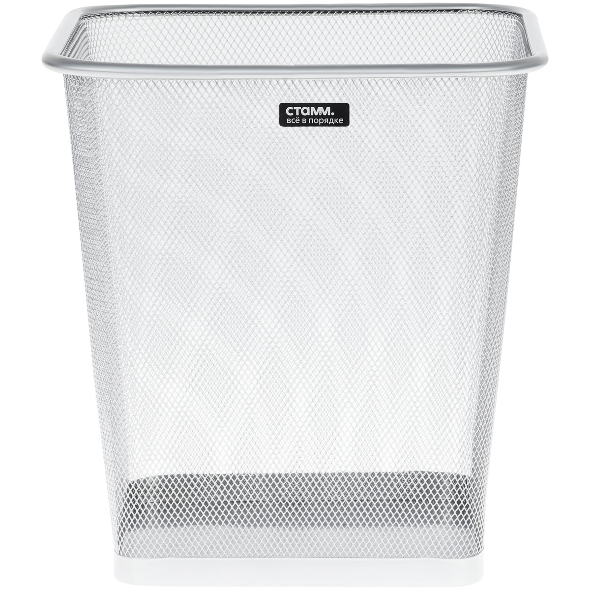355987 Корзина для бумаг СТАММ, 20л, сетчатая, металлическая, квадратное основание, серебристая