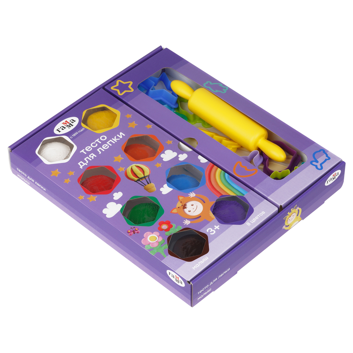 366992 Тесто для лепки Гамма "Малыш", 8 цветов, 480г, формочки, скалка, стек, картоннная упаковка new (Гамма_детство/шко...